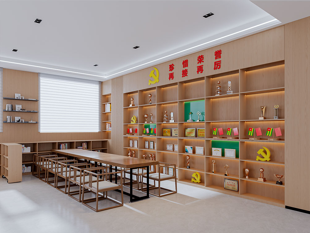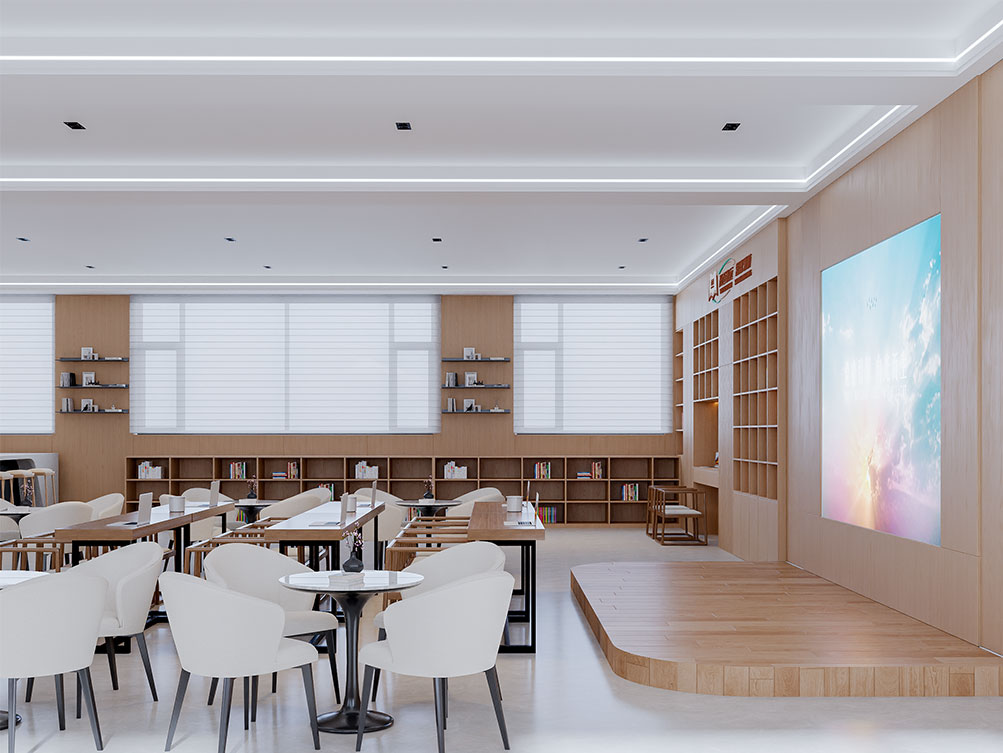 临清国网职工之家装修效果以 “温馨实用 + 电力特色” 为核心,整体采用暖白、浅蓝为主色调,搭配国网标志性的红色元素点缀。空间划分上,既有配备舒适沙发、绿植与书籍的休闲区,方便职工放松休憩;也有设置乒乓球桌、健身器材的运动区,满足日常锻炼需求;同时融入电力主题细节,如墙面挂置电网作业场景装饰画、角落摆放小型电力设备模型,凸显行业属性;功能区还兼顾实用性,茶水间配备齐全厨具,活动区预留灵活桌椅组合,可满足职工聚餐、小型活动等需求,整体营造出兼具归属感与行业辨识度的温馨空间,切实服务职工日常。