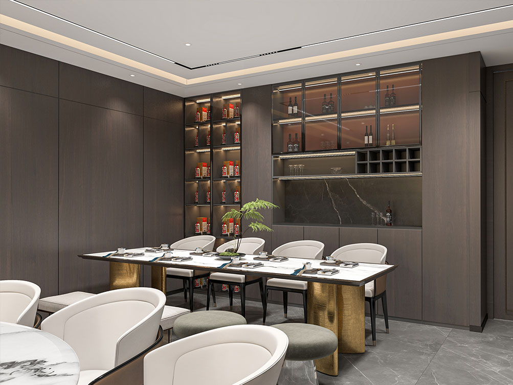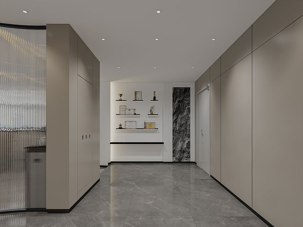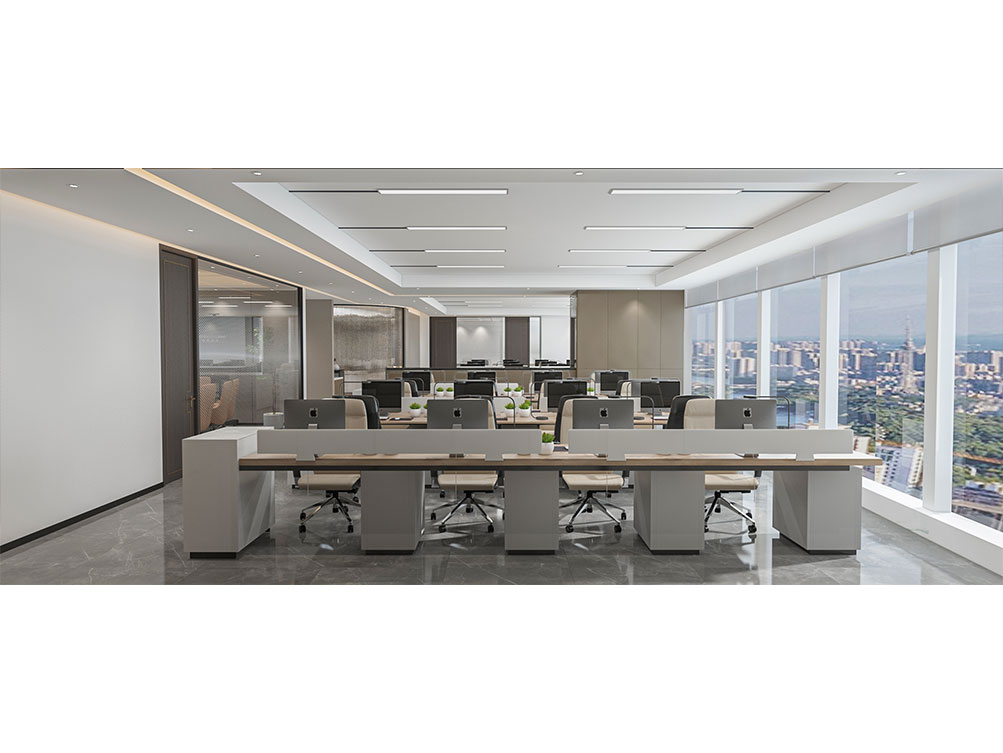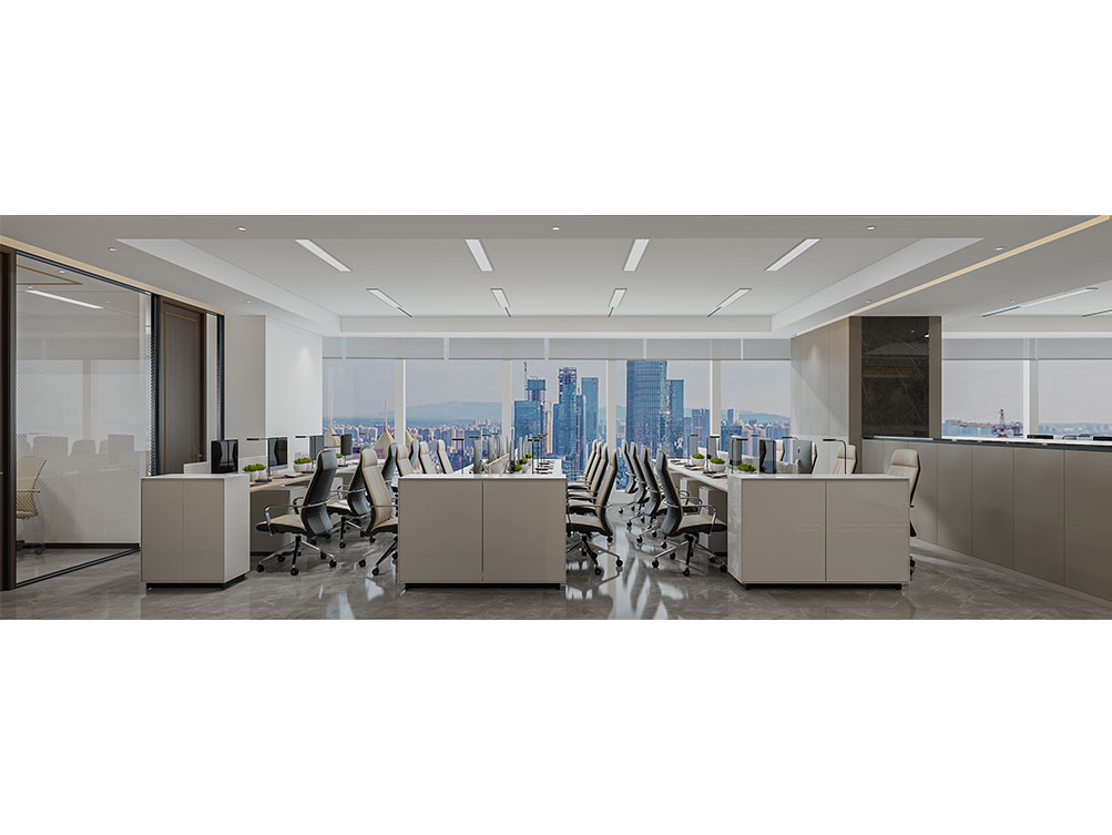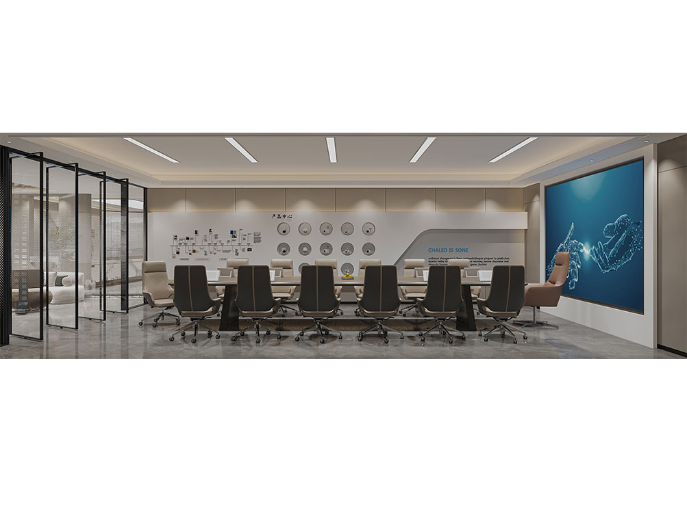 华润集团办公区装修效果以 “大气稳重 + 多元融合” 为核心,主色调选用深灰、米白搭配原木色与华润标志性红色点缀,既彰显央企的厚重底蕴,又兼具现代办公的活力。前台接待区采用大面积哑光石材背景墙,嵌入金属质感的集团 LOGO,搭配线条利落的深色接待台与艺术化绿植装置,传递专业且有温度的第一印象;开放办公区采用模块化智能工位设计,配备独立收纳系统与人体工学座椅,墙面穿插集团业务板块(如能源、零售、健康)的简约主题挂画,体现多元产业属性;会议室按规模配置高清智能会议系统与隔音材质,大型会议室增设远程视频设备,满足跨区域协作需求;同时设置兼具商务与休闲功能的茶水区、展示集团发展历程的文化墙,以及供员工放松的休闲区,整体空间在保障办公高效的同时,既凸显企业品牌调性,又兼顾员工体验与多元业务场景适配性。