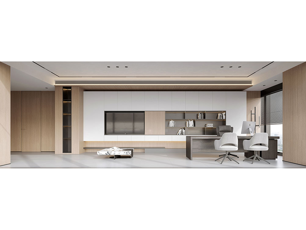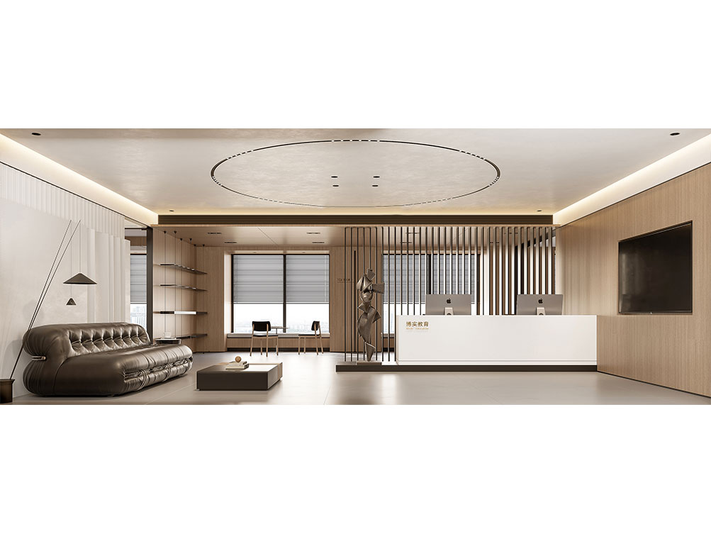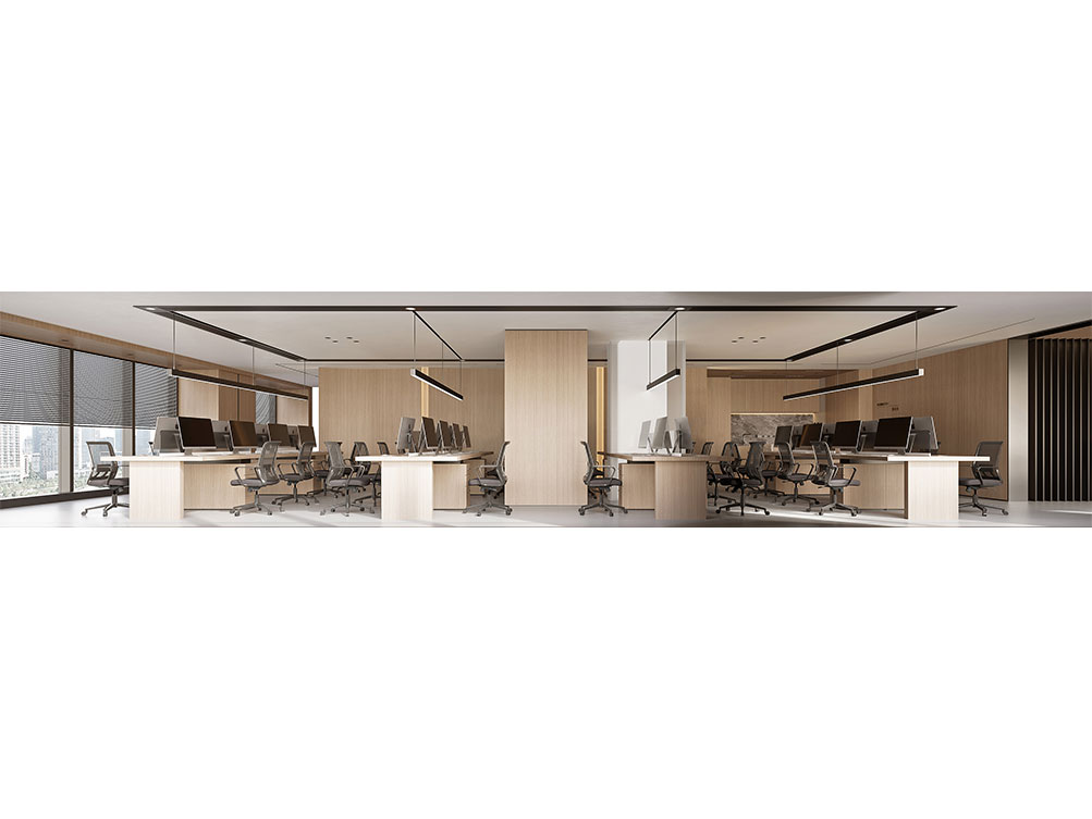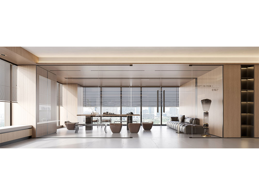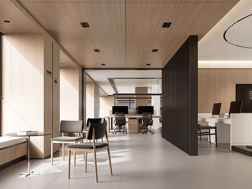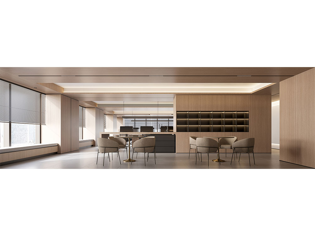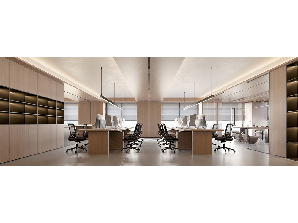 设计理念: 济南奥克斯中心办公室以温润木调为主线,搭配浅灰地面与嵌入式灯光,打造出济南办公室装修中标志性的简奢氛围。开放式长桌适配团队协作,玻璃隔断既保障通透又划分功能区,嵌入式柜体兼顾收纳与美学,结合柔光设计,契合济南商务空间 “实用 + 质感” 的装修需求,是济南办公室装修中现代高效风的典型呈现。
