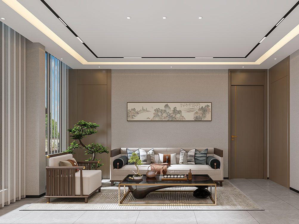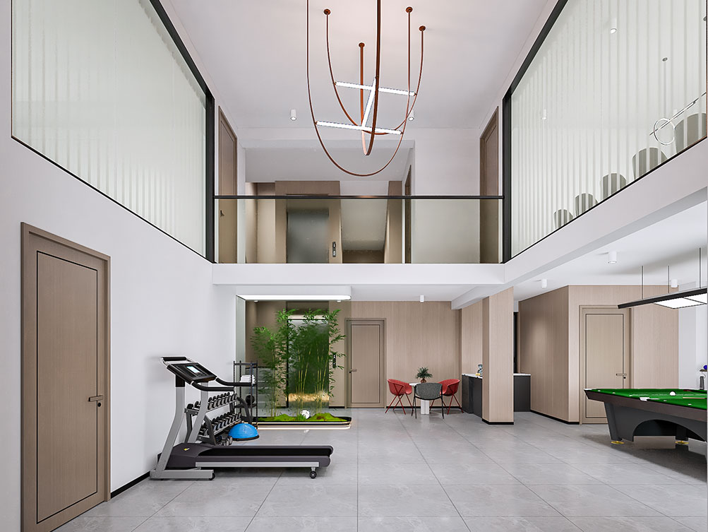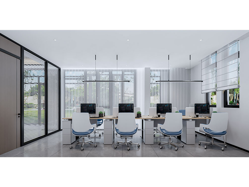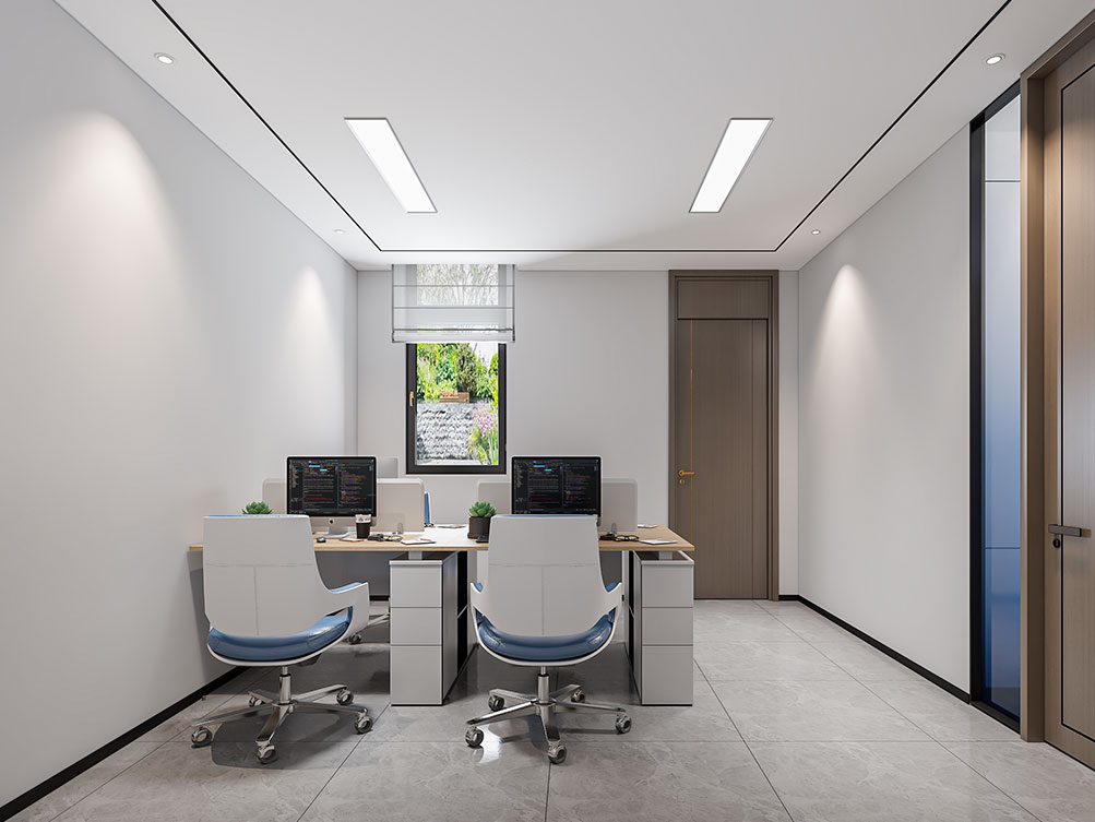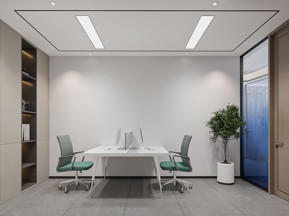 设计理念: 作为济南办公室装修中文化感休闲空间的代表,华达茶歇室以新中式风格为主调:原木茶桌搭配简约禅意座椅,背景注入东方韵味,嵌入式灯带与陈列柜烘托雅致氛围,既契合济南办公室装修商务接待的功能需求,也以温润质感消解办公疲惫,是济南办公空间中人文休闲区的优质范本。